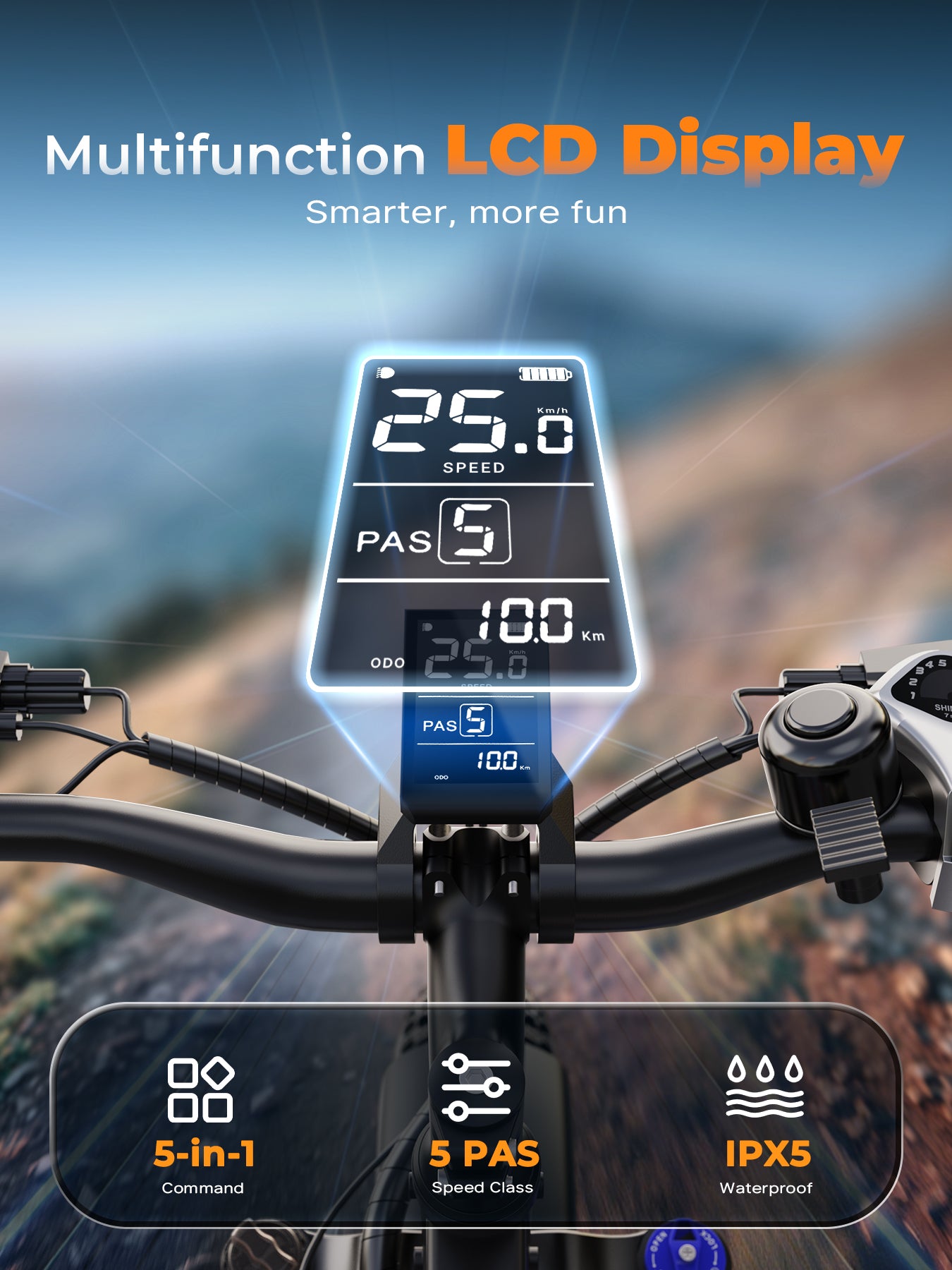 Reliable 160MM disc brakes on both wheels offer responsive stopping power, ensuring control and safety even at higher speeds. - Smart LCD Display