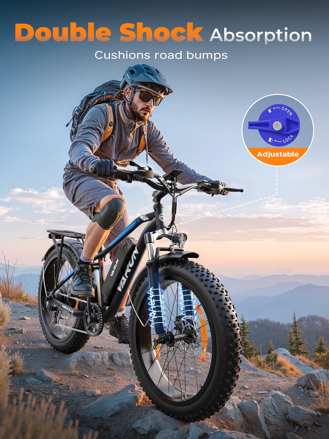 Oversized fat tires provide excellent traction and stability on pavement, sand, snow, or gravel—ride confidently no matter the season. - Dual Suspension System
