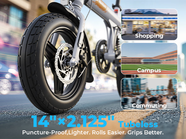 Powered by a 350W motor with 500W peak output, the C14-1 reaches a top speed of 20MPH (32 km/h). With 40Nm torque, it climbs hills smoothly while offering throttle and pedal-assist modes.