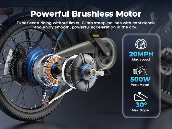 The VARUN C20-2 is equipped with a high-performance 500W peak brushless motor. It allows you to reach a maximum speed of 20 MPH effortlessly, making it the perfect speed-efficient electric bike for urban commuting.